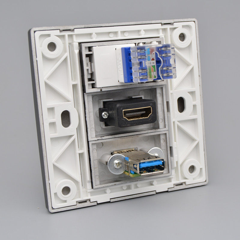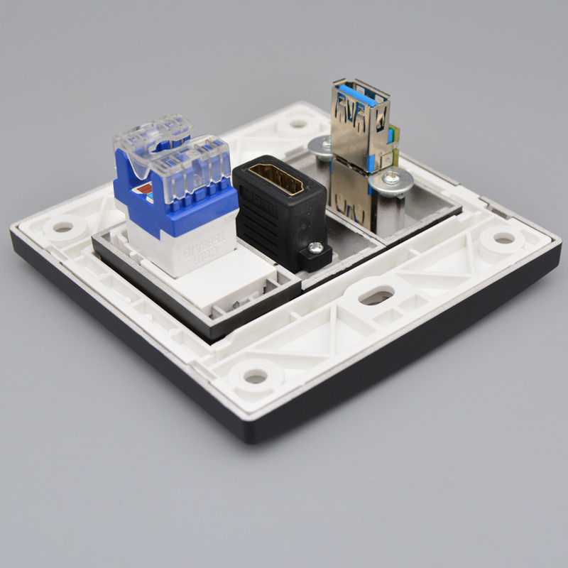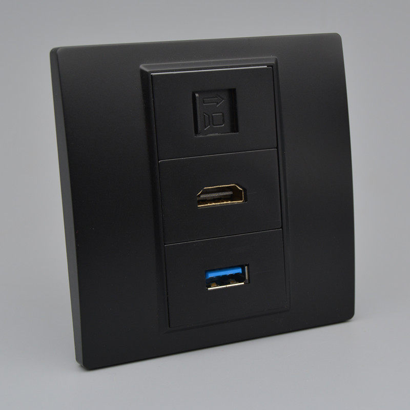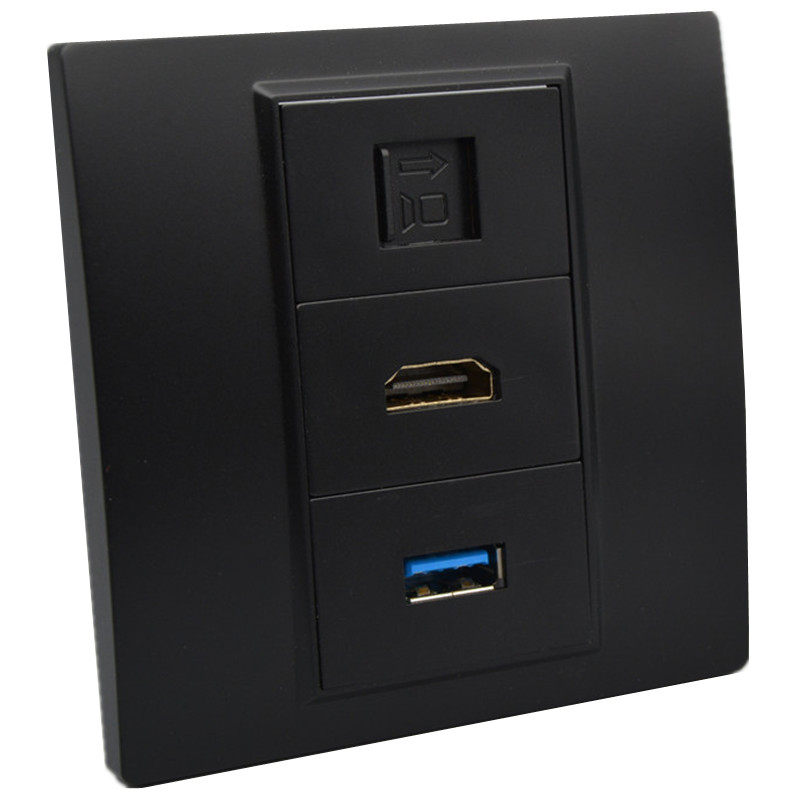 Black Gigabit Network USB HD Socket Cat6 Network Cable Port HDMI TV + 3.0 USB Data Extension Panel