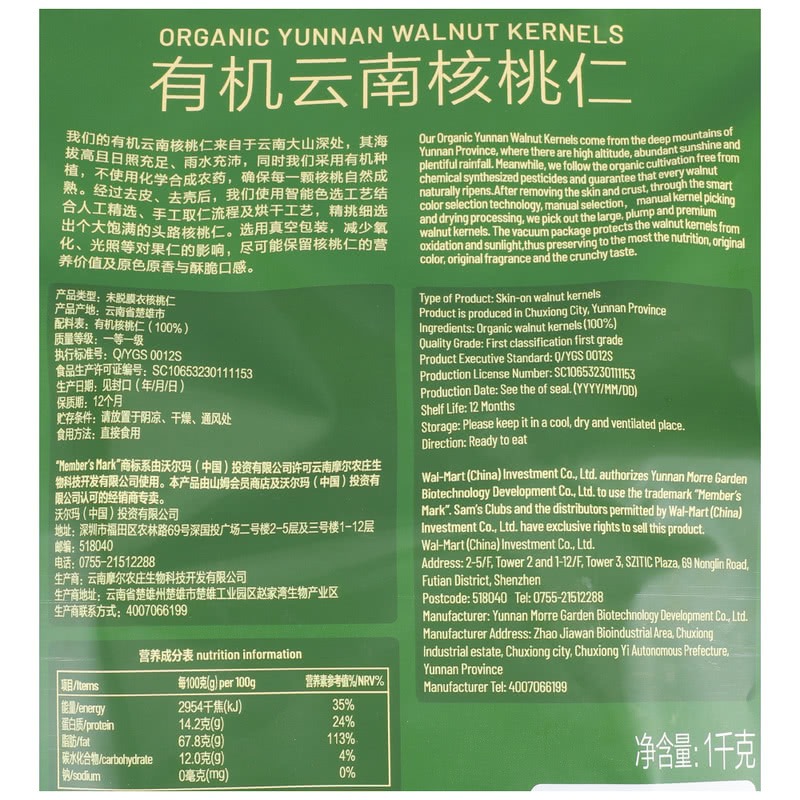 Sam Members Store Members Mark Yunnan Organic Walnuts 1kg shelled supermarket snack