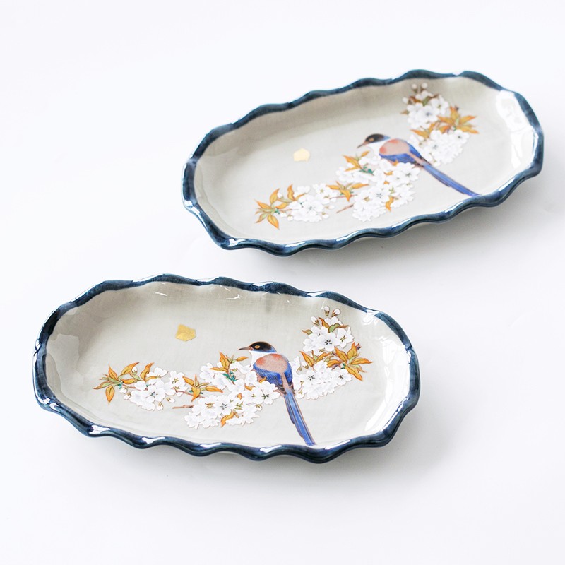 Sakura Oval Disk Single Package Spot Ceramic Lace Disk A Ceramic Lace Disk B Ceramic Lace Disk C Ceramic Lace Disk D Ceramic Lace Dining Disk E Plant Lace Dining Disk Set A-E Ceramic Plate