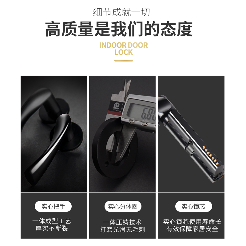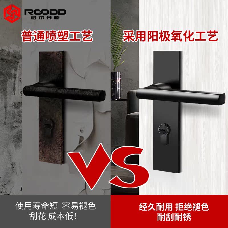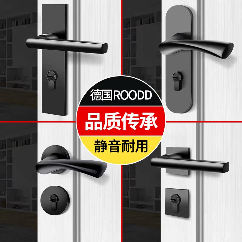 ROODD bedroom door lock two-piece mute magnetic household door lock Black solid wood door handle universal lock