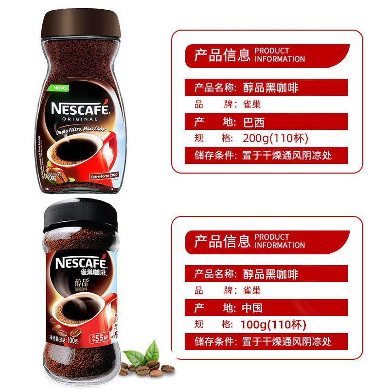 Nestlé Nestle Black Coffee Pink Mellow Pure Coffee Bitter Instant Coffee 100g * 2 Bottled