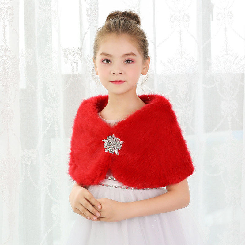 Children's Dress Shawl Girls Princess Dress Cape Thickened Autumn and Winter Flower Girl Performance Etiquette Keeping Girls One-shoulder