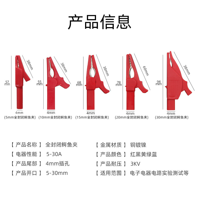 Woo Jo Pure Copper 5mm10mm15mm20mm30mm Totally Enclosed Crocodile Clip Safety Clip Tail Hole 4mm Banana Jack