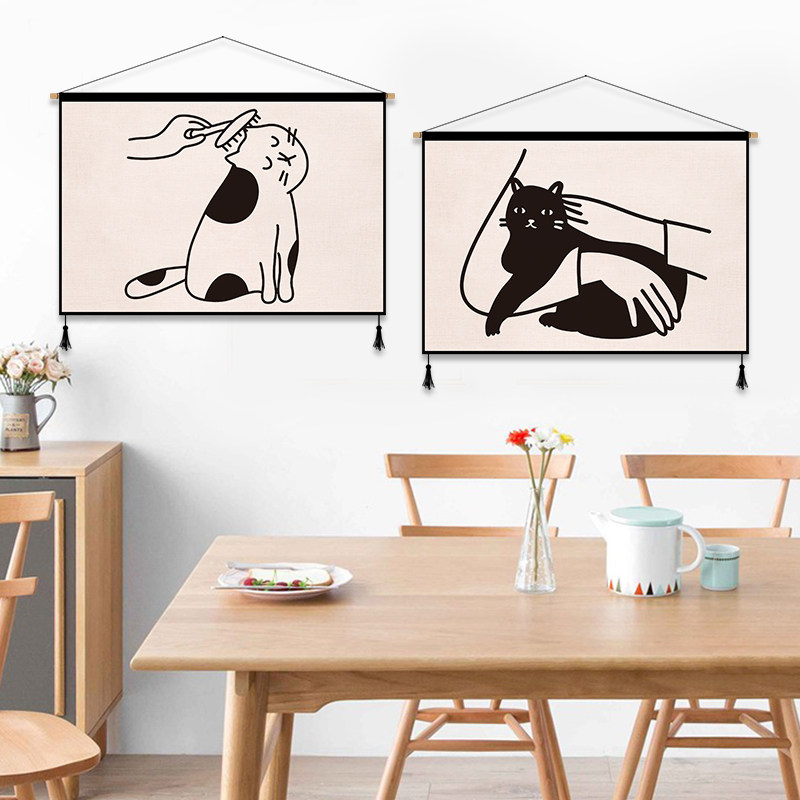 Black and white minimalist cloth art hanging drawing room dining room Dining Hall Decoration Painting Background Wall Hung Bu Dormitory Wall Buins Wind Tapestry