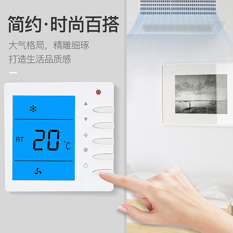 Central air conditioning thermostat LCD panel controller three-speed switching fan coil-cooled wire control