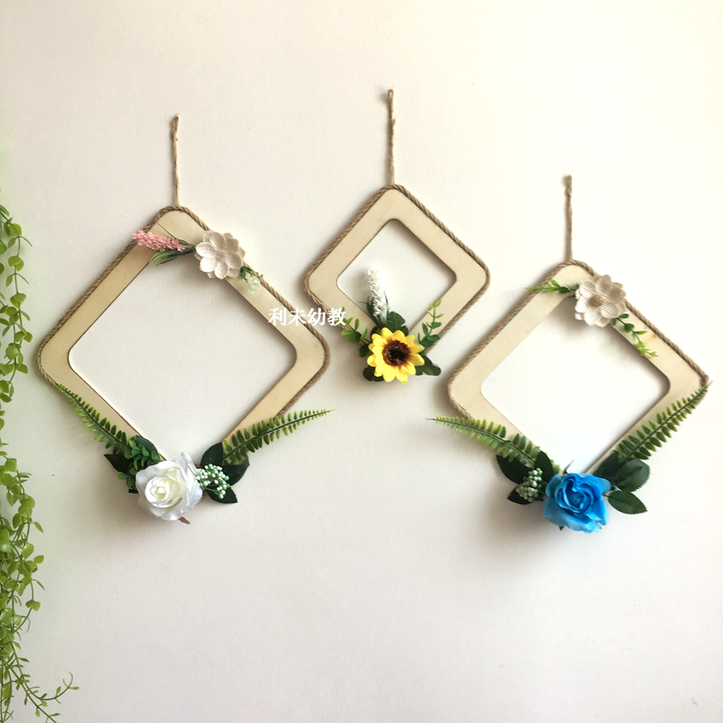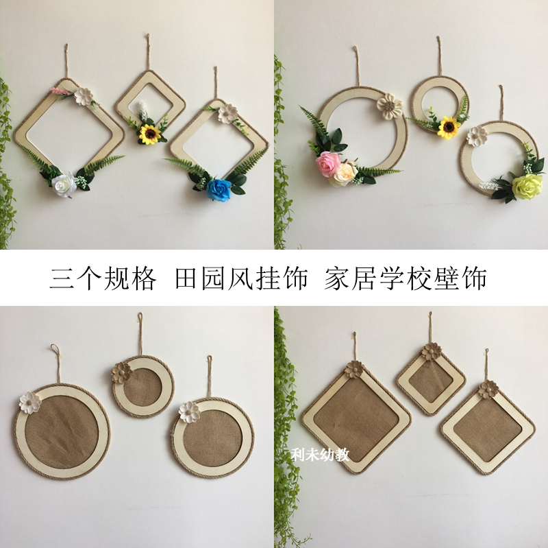 Square wooden planks large and small circular wooden boards large and small square hemp cloth large and small circular hemp cloth large and small square white yarn with large medium and small circular white yarn with large small and small square flower with large small and small round flowers