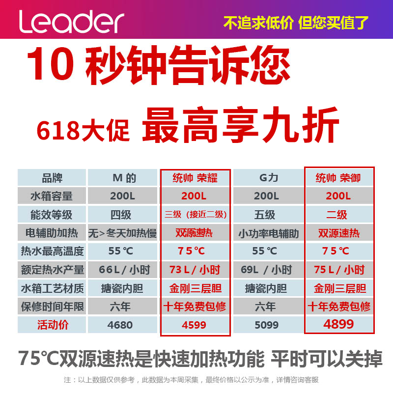 Consultation customer service carnival month Haier commander new 200 liters 75 degrees first-class energy efficiency Haier Rongyu 200 liters 75 degrees second-class energy efficiency Haier speed 200 liters 75 degrees second-class energy efficiency Haier Rongyu 2