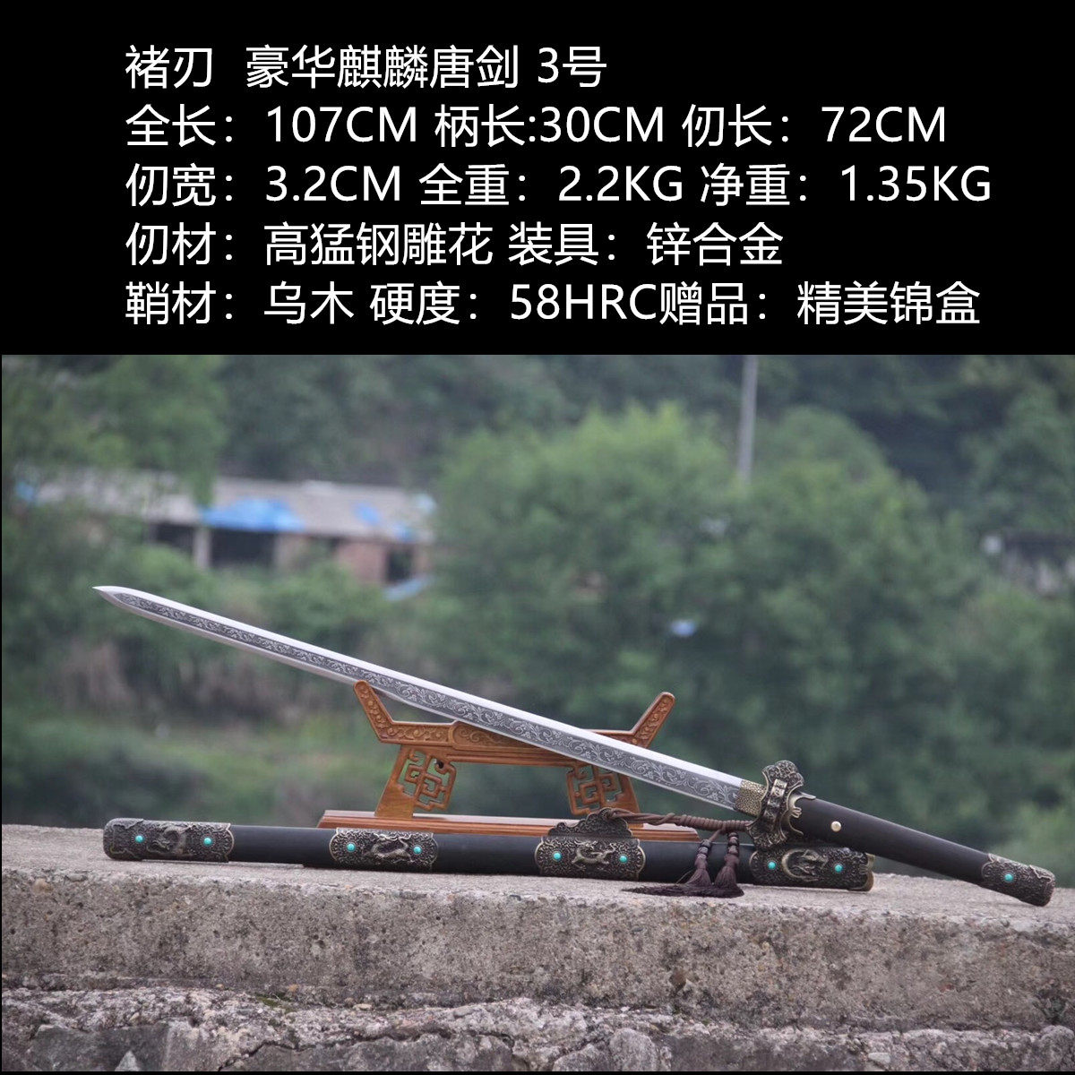 Longquan Jia Craftsman Baojian Town House Integrated Long Sword Pattern Steel High Manganese Steel Tang Heng Sword Qin Jian Cold Weapon Not Edged