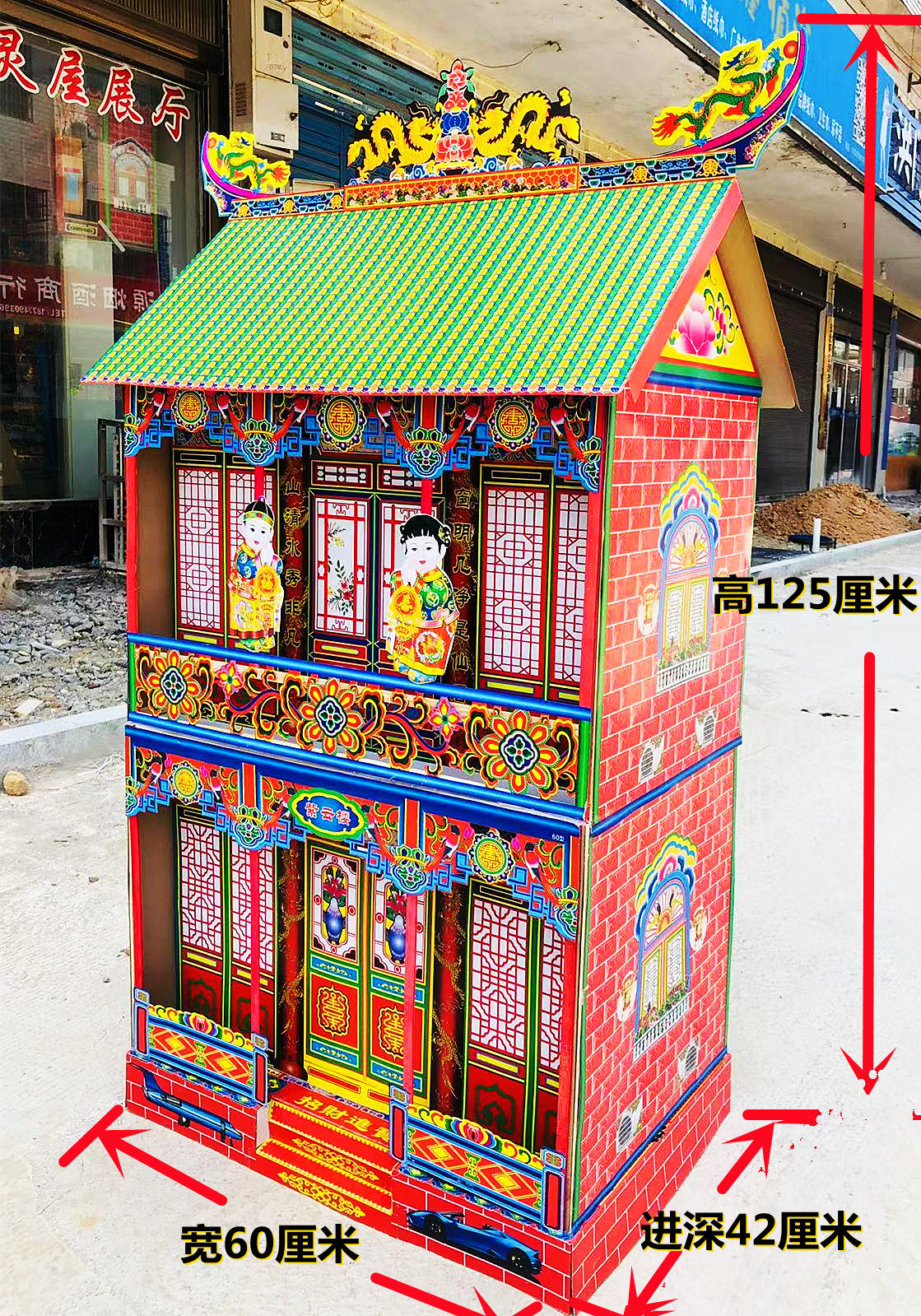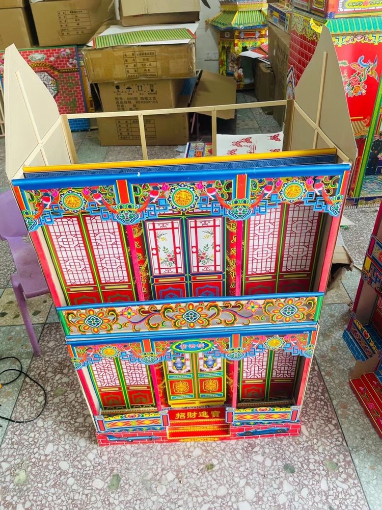 1 25 meters plus high type 60 type burnt paper paper house ghost house ghost house folded villa paper tie folded bamboo frame spirit house