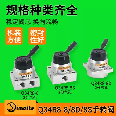 Pneumatic valve switch three-position four-way manual directional control valve Cylinder control valve Q34R8-8 human control hand turn valve