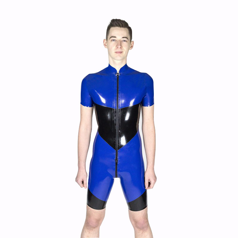 Latex men's latex tightness stereo clips to shape short sleeve suit and connecting clothes customized