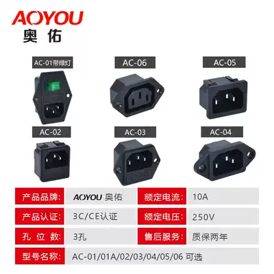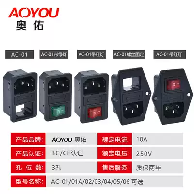 AC-01 01A card type character socket with light with switch AC power seat three-hole AC-04 02 03 06 05