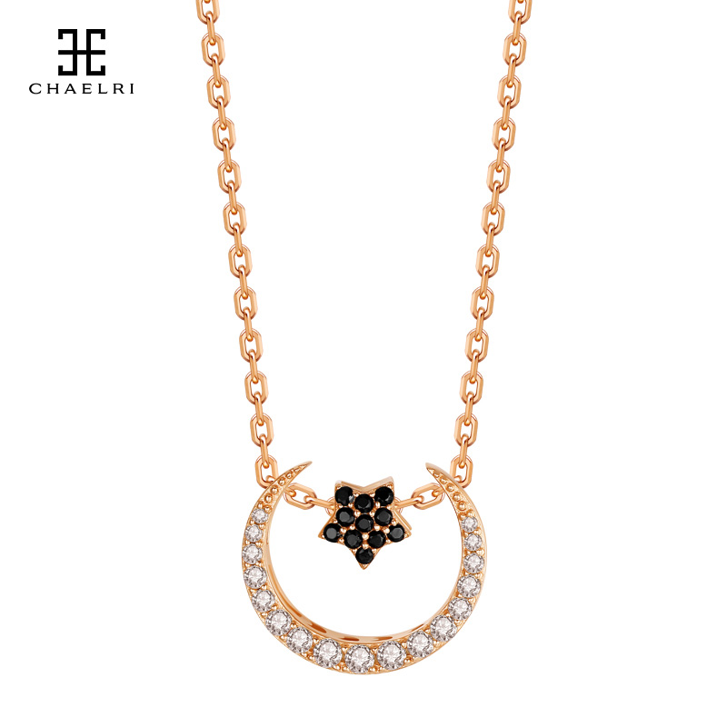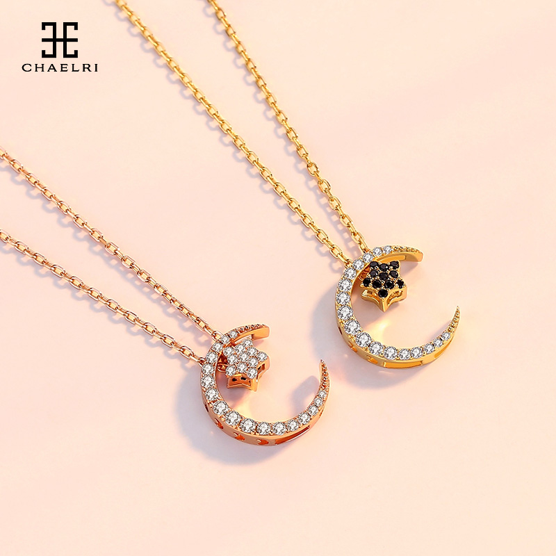 Lambil Star Moon Crescent Combination S925 Sterling Silver Rose Gold Plated Necklace Women's Collarbone Chain Japanese and Korean Edition Jewelry