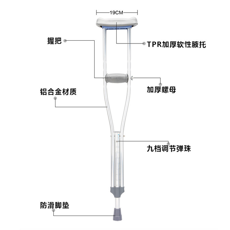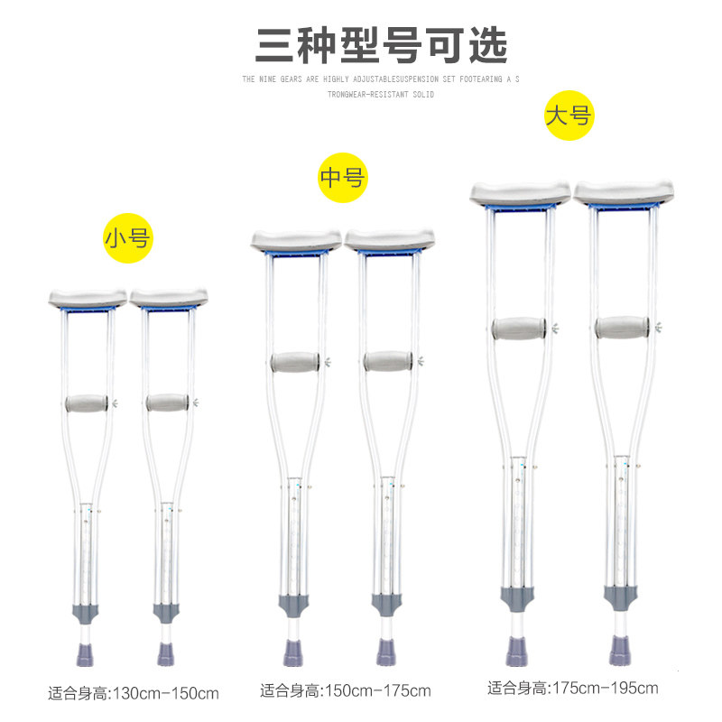 Axillary crutches stainless steel aluminum alloy double crutches anti-skid fractures, people with physical and mental disabilities, adjustable height, elderly crutches, elderly crutches