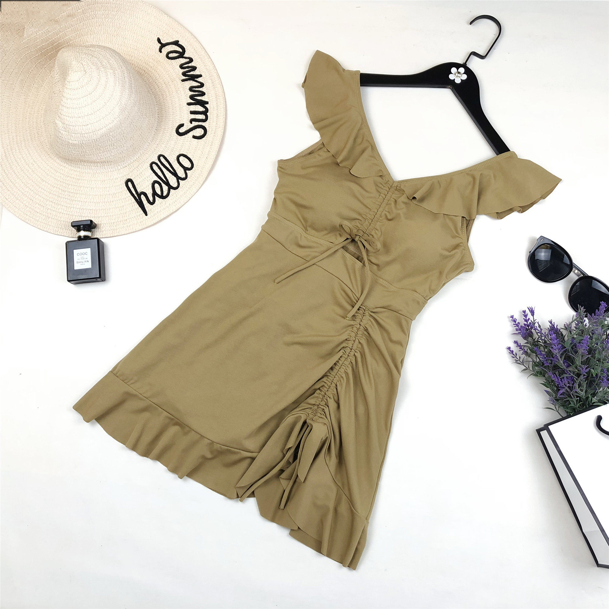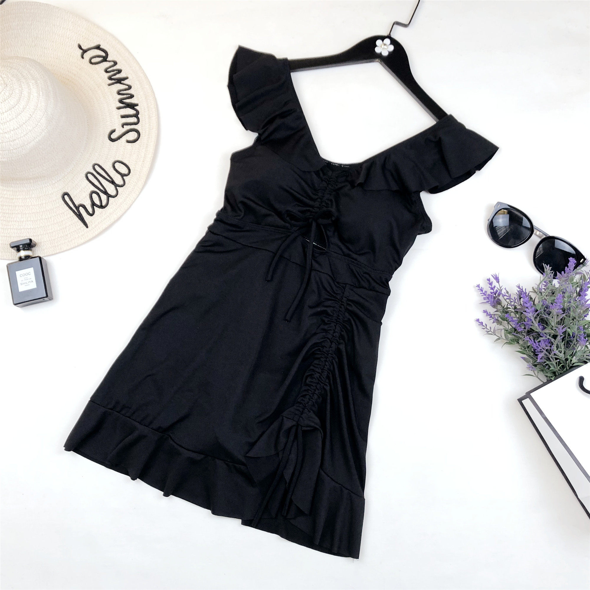 Skirt-style even for a swimsuit in a dress.