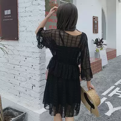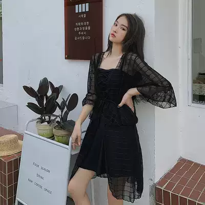 Large size swimsuit women's three-piece set 200 kg thin sexy big chest bikini fat mm belly cover hot spring long-sleeved blouse