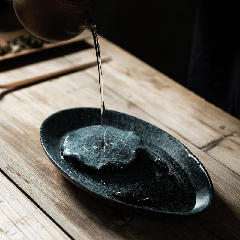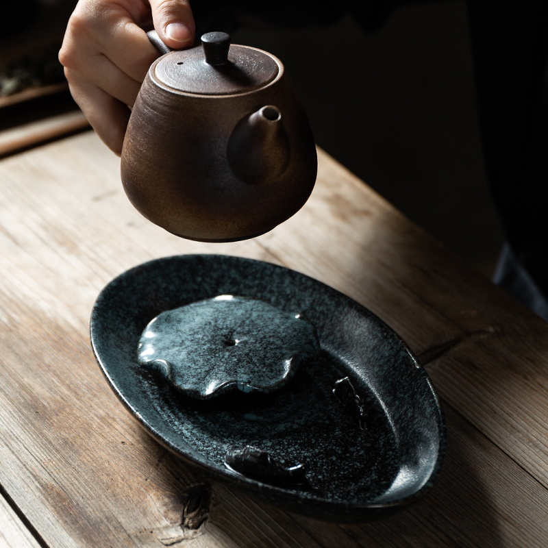 Chinese style retro coarse pottery pot bearing and pot base can water storage ceramic dry bubble table tea bearing small tea table teapot cushion