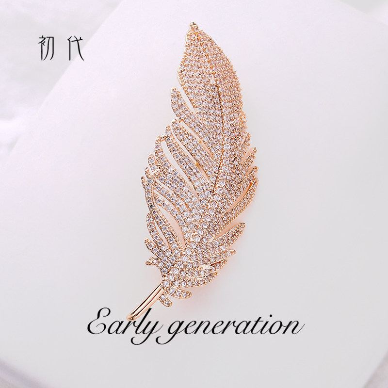 Early-generation popular classic style large-pin feather brooch breasted breast flower female upscale 100 hitches Japan-Japan brief atmospheric wind