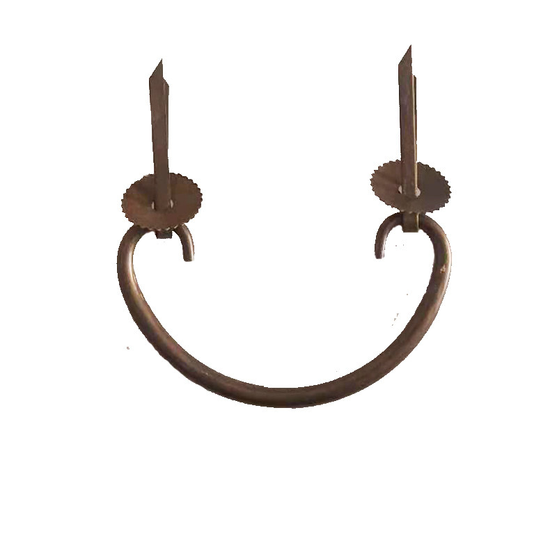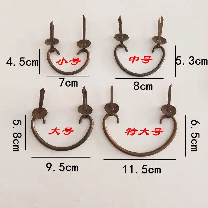 Chinese antique pure copper drawer handle silver ingot ring type inner hook antique furniture horn handle hook luggage handle