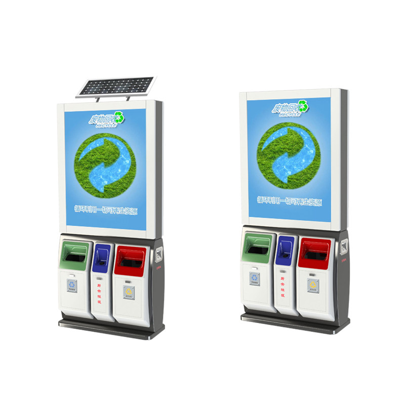 Outdoor Street Classification Smart Dustbin Set For Solar Advertising Dustbin Stainless Steel Wall-mounted Rolling Light Box