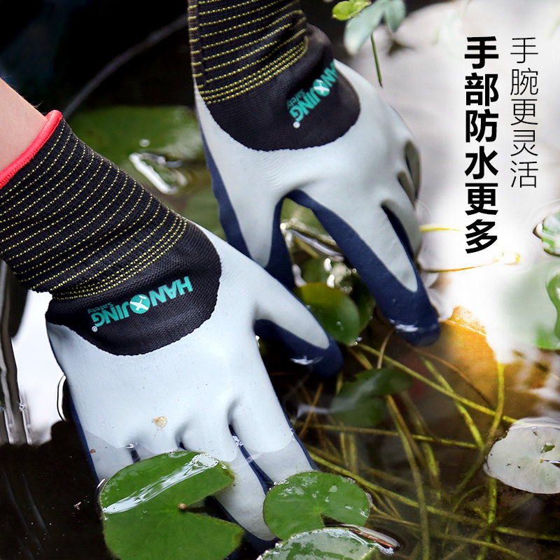 HANGJING Aerial Gardening Gloves Waterproof, Puncture-proof, Anti-slip Double Layer Latex Soft and Comfortable Thickened Aquatic Products Catch the Sea