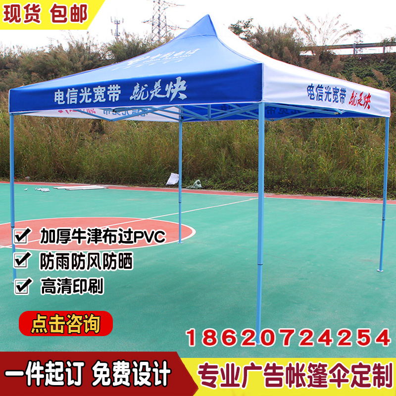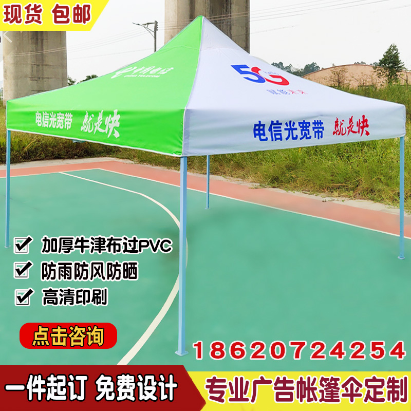 China Telecom advertising tent four-corner folding square umbrella 5G broadband outdoor publicity stalls four-legged tent