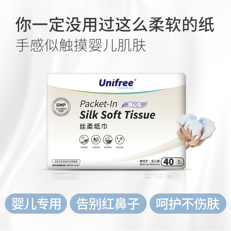 unifree baby silk soft paper towel Newborn paper towel Baby special cream paper 40 pumping 5 packs portable pack