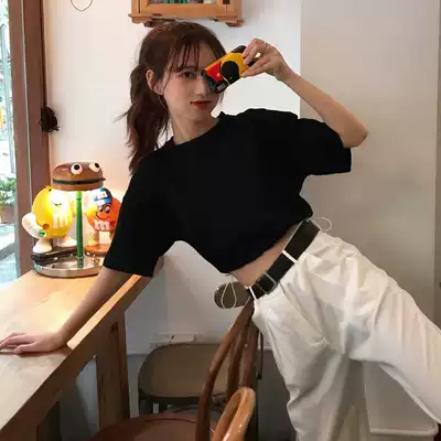 High waist navel short loose large size drawstring short sleeve jazz style women's dancing clothes hot girl top jazz jazz