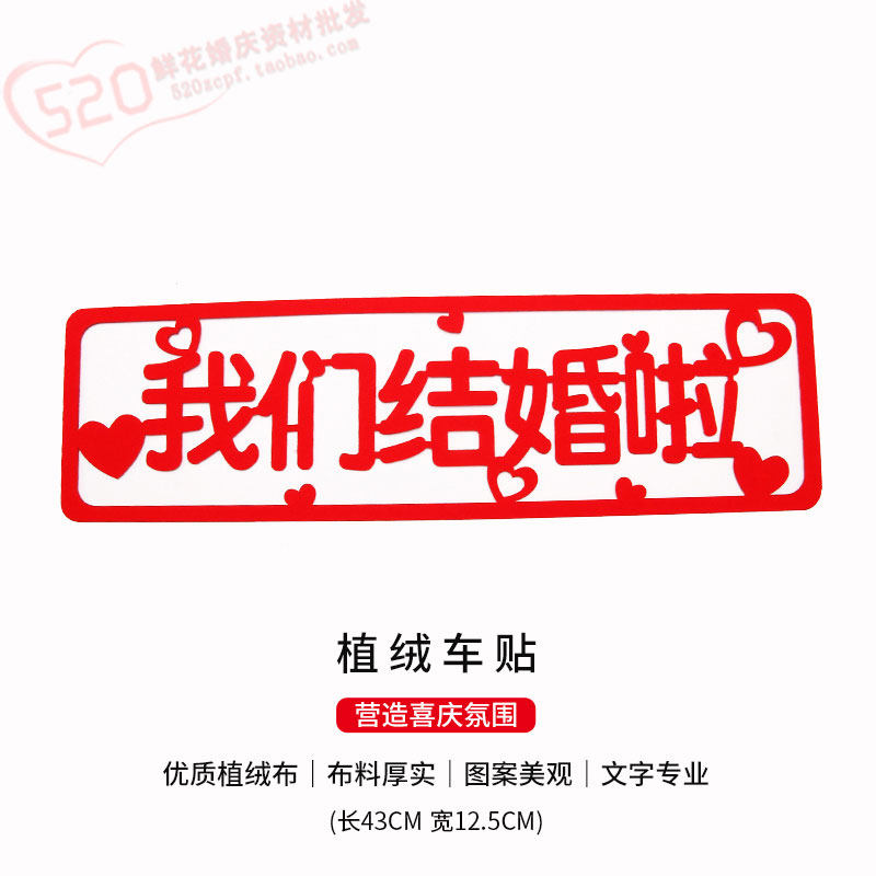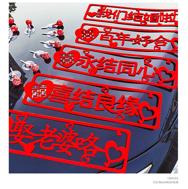 New flocked car sticker personality felt wedding car sticker license plate sticker China red festive car front decoration brand wedding supplies