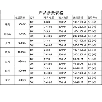 10 1W3W watt LED lamp beads Single lamp high-brightness patch flashlight spotlight Blue light small bulb full spectrum white light