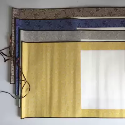 Framed blank painting scroll Brown vertical scroll without shaft Long roll rice paper Decorative calligraphy silver gray scroll