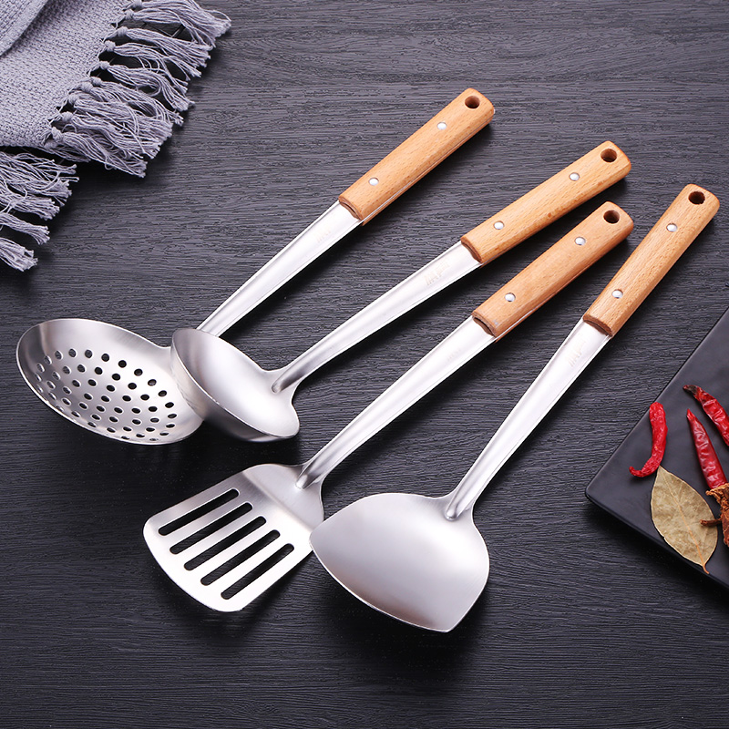 Anti-scalding frosted stainless steel pan spade soup spoon fried vegetable shovel kitchenware full set of thickened non-stick high temperature resistant for domestic frying