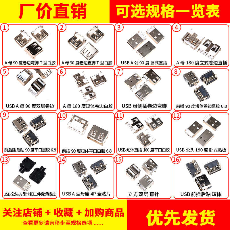 USB A public 90 degrees horizontal straight inserts (10) A mother 180 degrees vertical curl straight inserts (20) A mother 90-degree curl straight foot T type white glue (20) A