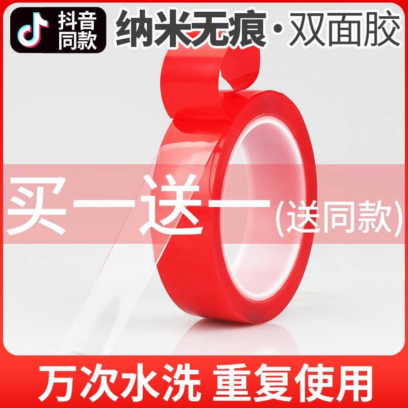 Douyin with the same nanometer double-sided adhesive net red thickened high viscosity strong transparent magic glue waterproof and high temperature resistant wall fixed without leaving marks extraordinary force manual special invisible universal adhesive tape
