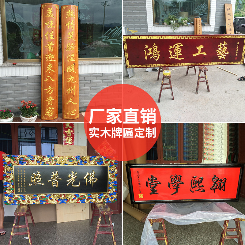 Plaque custom-made solid wood door carved wooden plaque shop signboard production antique wooden couplet word plaque custom