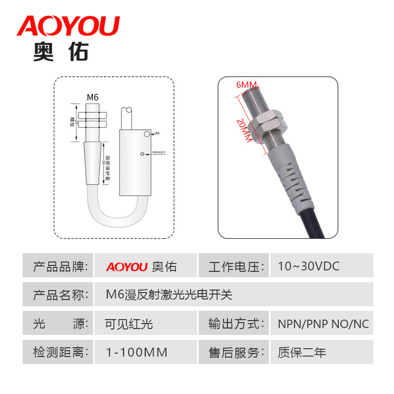 M6 laser diffuse reflected light electric switch sensor micro infrared light inductor visible light AYJG-06NO