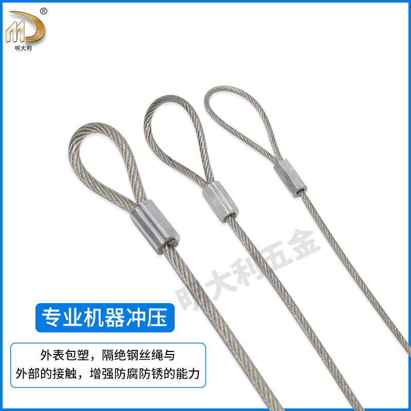 Professional custom 1 5mm~6mm rubber coated wire rope 304 stainless steel aluminum sleeve ring compression fall protection safety rope