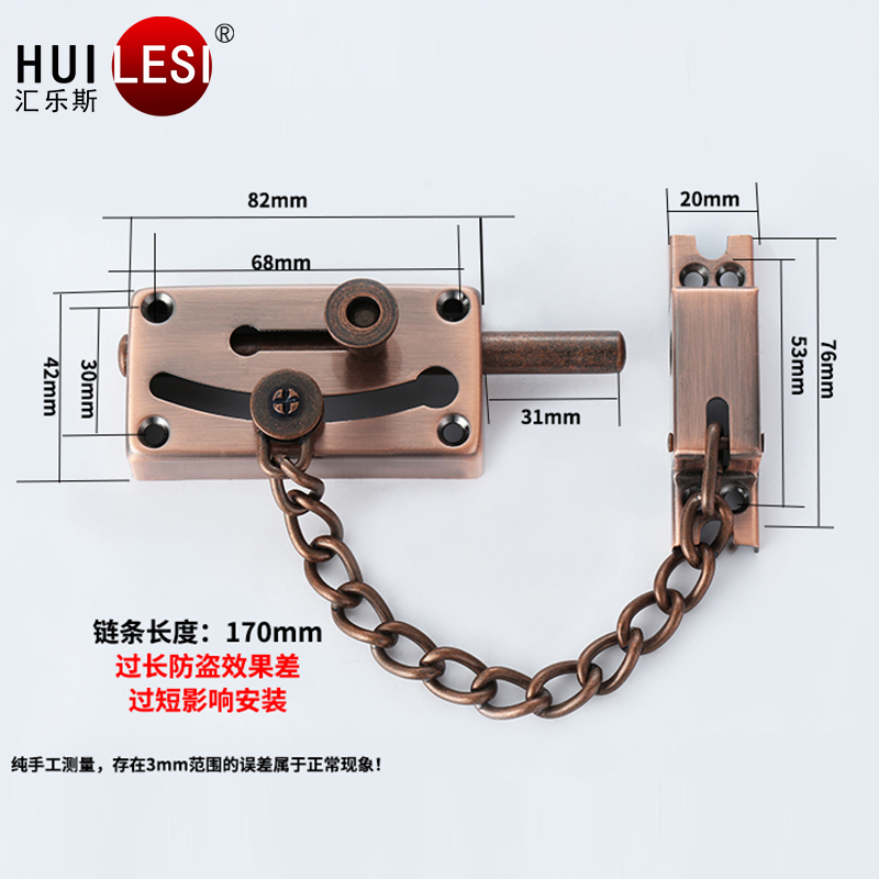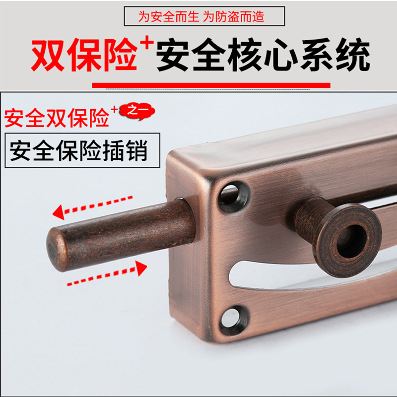 Security door bolt lock thickened door bolt burglar-proof chain door buckle safety lock catch anti-theft button red ancient copper-Taobao