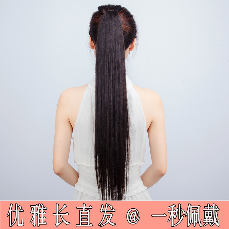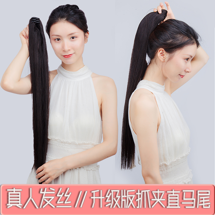 Real Hair Catch Clip Horsetail Straight Hair Permalable Wig Mattail Long Hair Braids Full Truth Man Nature Realistic