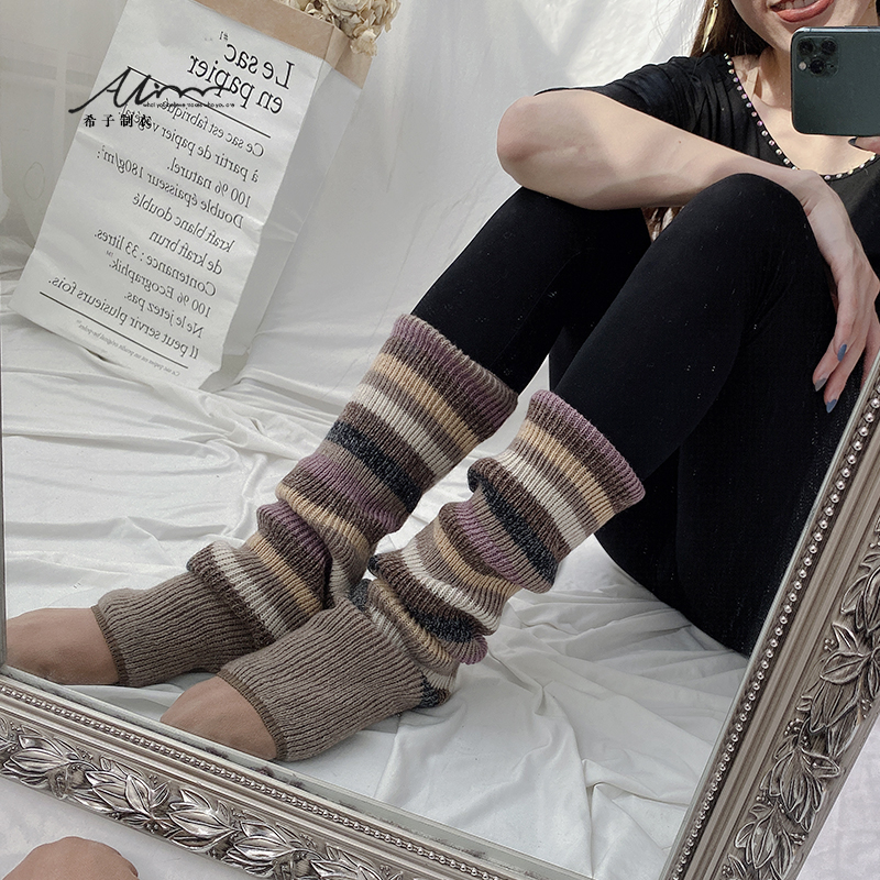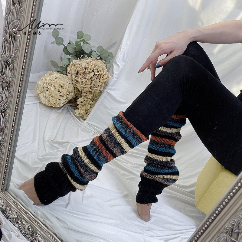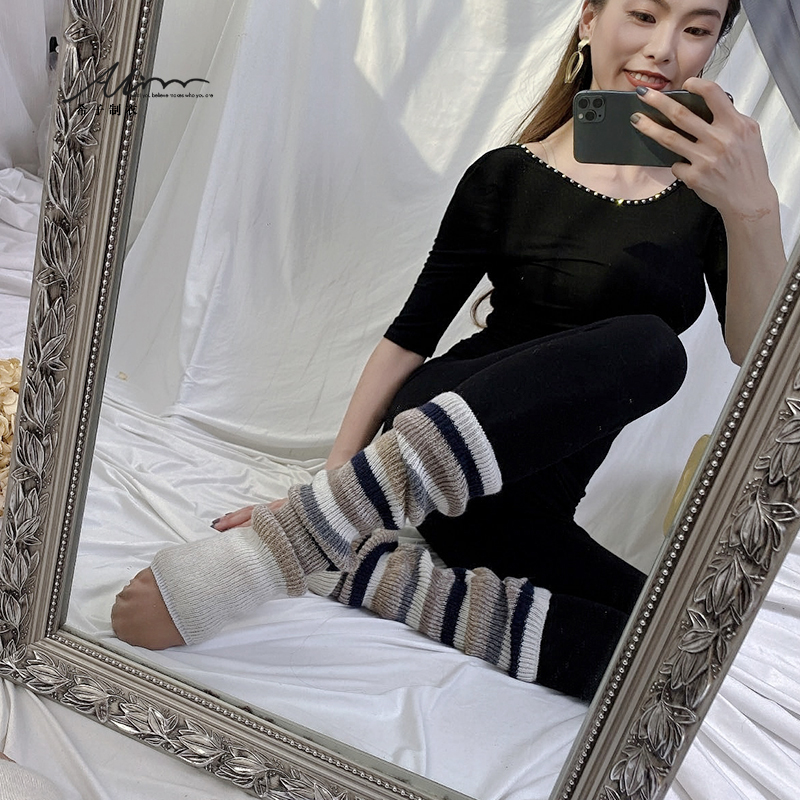 Xizijia belly dance socks Warm non-slip knee socks Knitted striped dance socks Practice stockings