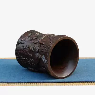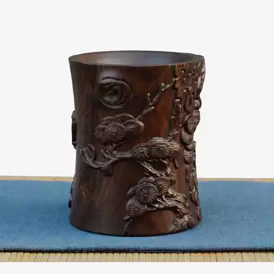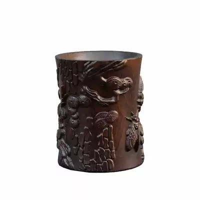 Mahogany pen holder Creative engraving office desktop gift decoration Chinese style solid wood storage box Ebony pen holder