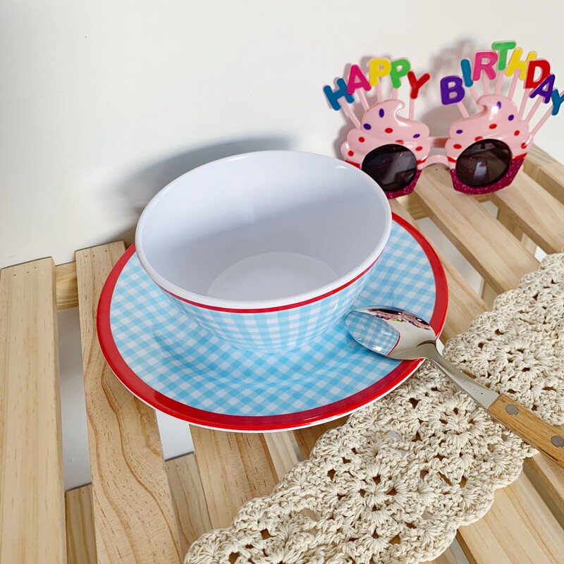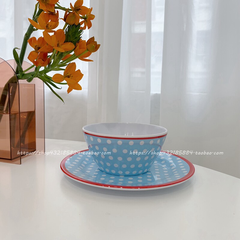 ins French Teen Hearts Cutlery Cutlery Cutlery Blue White Plaid Bowl Creative Dinner Plate Heat Bowl Dish Student Bubble Noodle Bowl