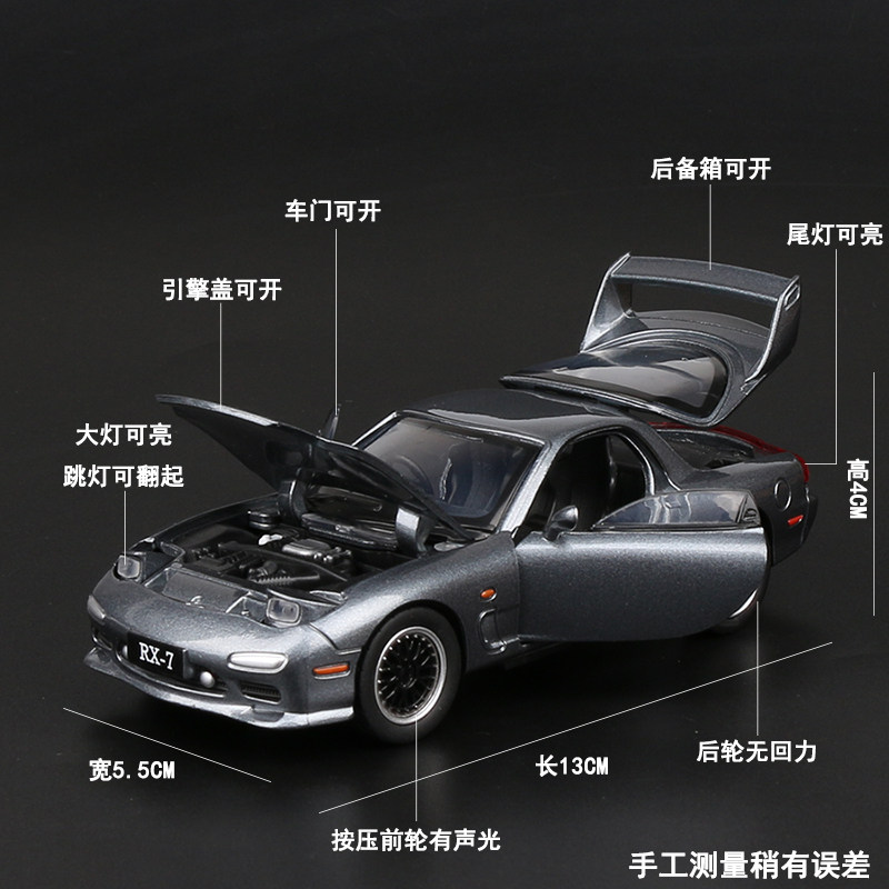 MazdaRX7 sports car 1:32 alloy car model jump lights open door sound and light metal toy simulation car model