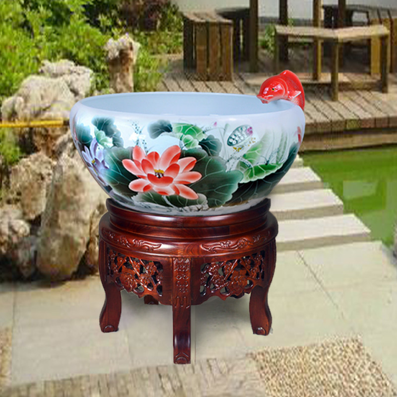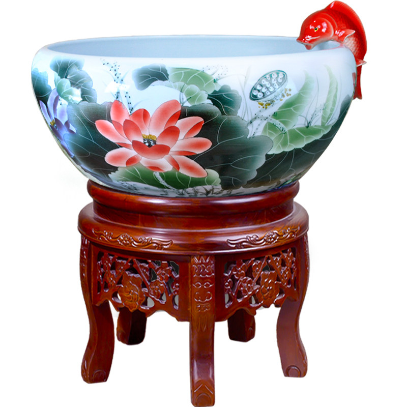 Home Jingdezhen Ceramic fish farming cylinder Porcelain Cylinder Water Cylinder Cycle Flowing Water Filtration Oxygenallivingroom Gold Fish Tank Utortoise Vat