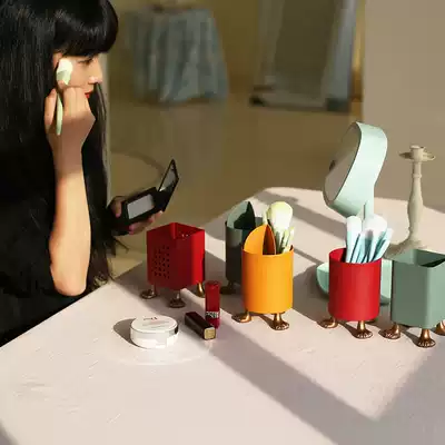 Empty Meow) Nordic creative makeup brush barrel storage tube ins desktop storage box cosmetic table cosmetics Sundries