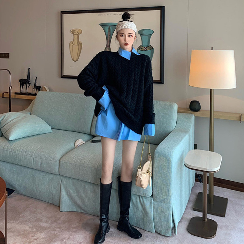 Light blue shirt black sweater S light blue shirt black sweater M light blue shirt black sweater L light blue shirt black sweater L light blue shirt black sweater XL