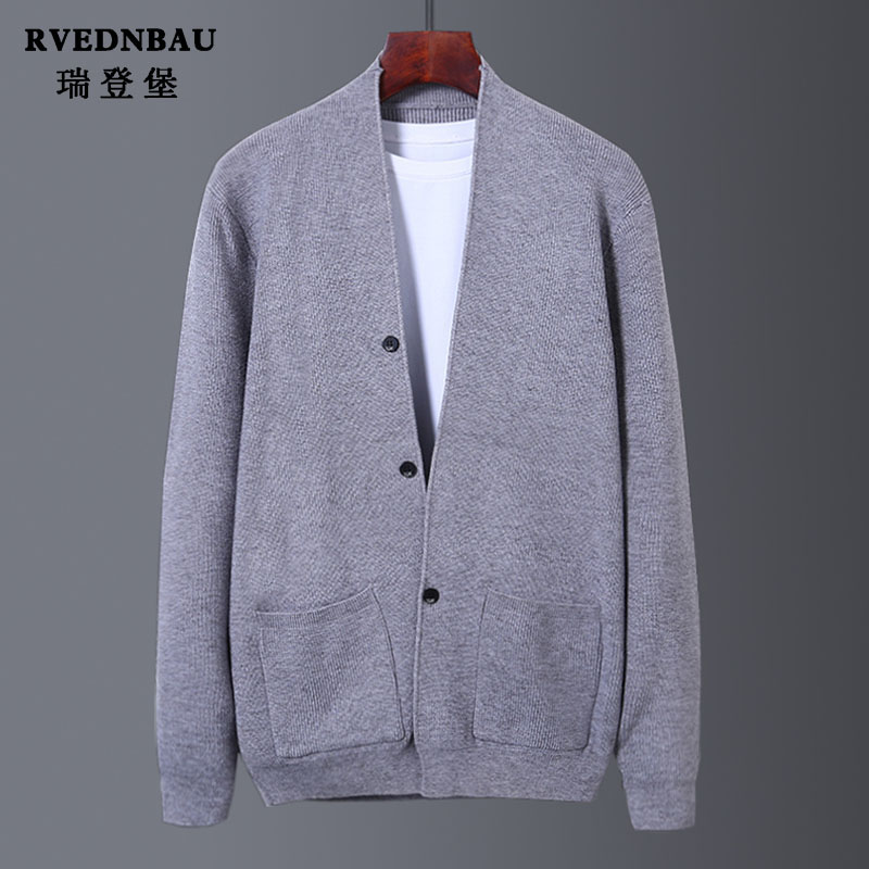 Knitted cardigan men's coat spring and autumn thickened men's solid color sweater Korean version of the outside wear trend handsome men's sanitary clothing
