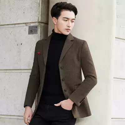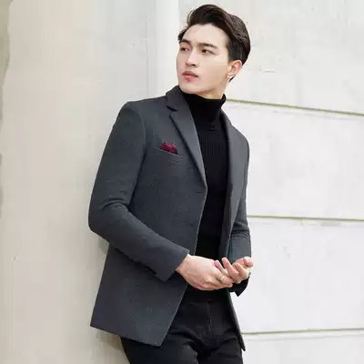 Light luxury brand wool casual suit men's Korean slim long-sleeved suit trendy youth wool jacket thickened
