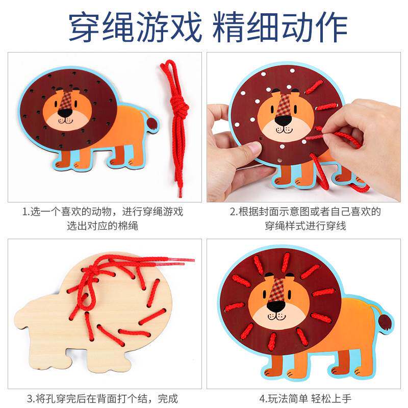 Children 1234 years old teach attentive observation force fine action training fruit animal threading plate wooden play teaching aids