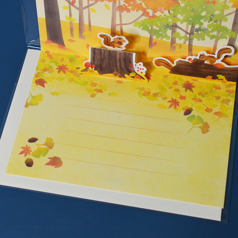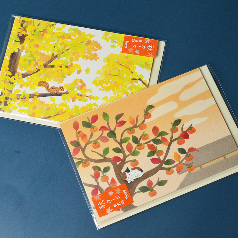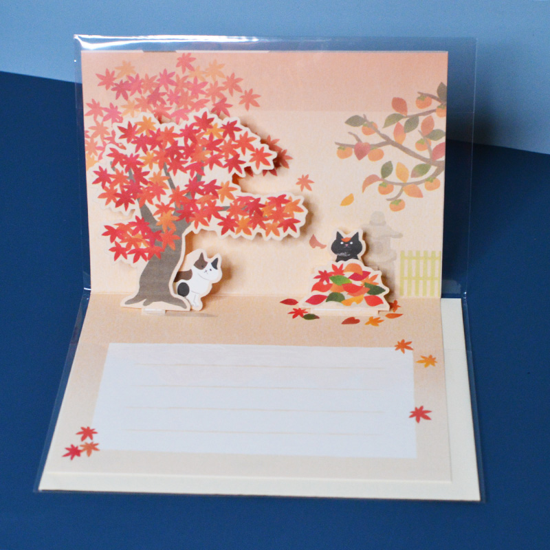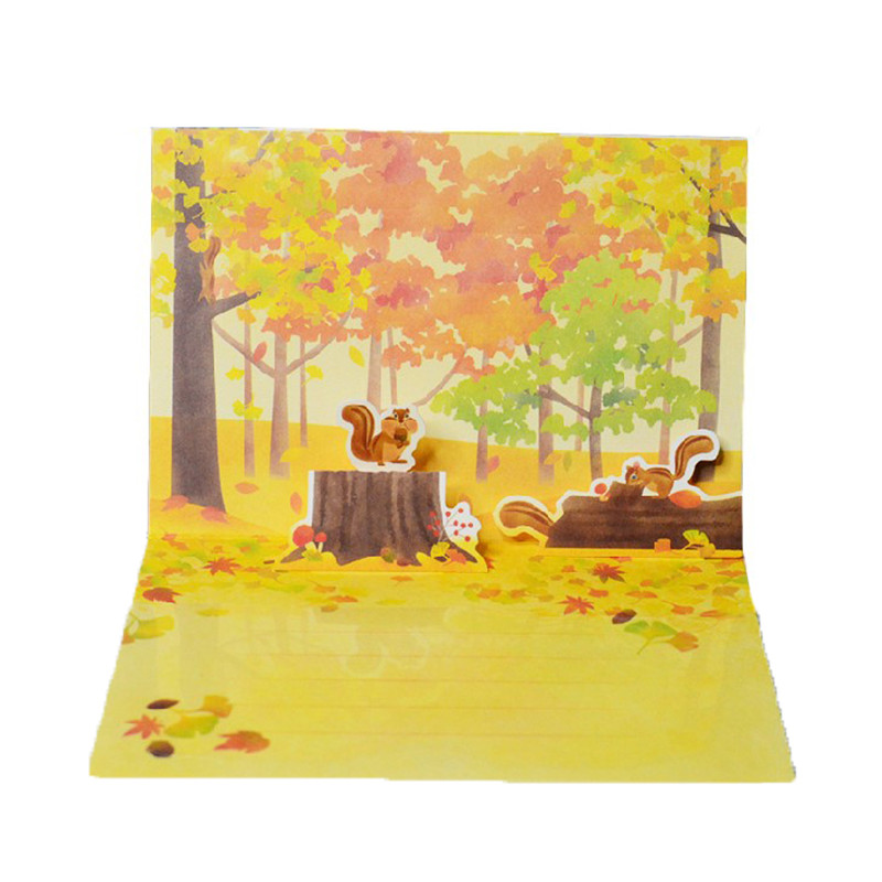 Japan Buy Autumn Scenery Maple Tree Gingko Kitty Squirrel Solid Birthday Sent Teacher's Teacher's Festival Thanks To Blessing Card
